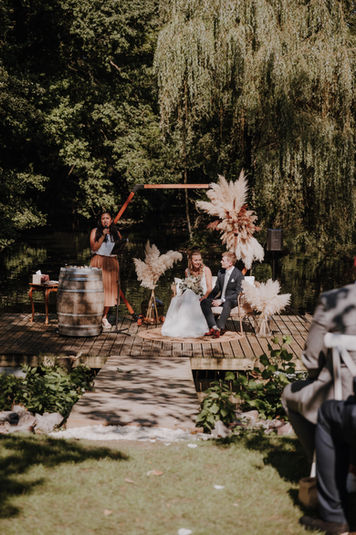 ... Als dann endlich der große Tag da war, konnten wir endlich erleben, was Ellaine aus den ganzen Gesprächen, mit uns und unseren Herzensmenschen, und den Fragebögen gezaubert hat. Und was soll ich sagen, sie hat sich selber übertroffen und wir hätten es niemals für möglich gehalten, dass es so wunderschön werden würde. Die Trauung war sehr emotional und zugleich hatten wir alle so viel Spaß mit Ellaine. Alles war so persönlich und locker, genau so, wie wir uns unsere freie Trauung gewünscht haben. Alle Gäste waren ebenso beeindruckt und kein Auge ist trocken geblieben.
