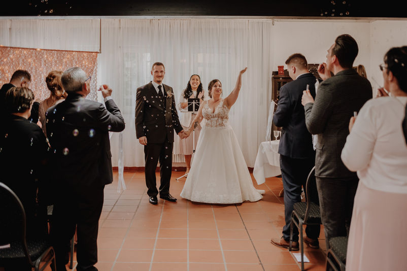 ... Ellaine hat uns eine wundervolle, lockere und vor allem super persönliche Trauung ermöglicht. Schon bei der Vorbereitung war uns klar, dass es nur gut werden kann - denn Ellaine ist jedem gegenüber sehr offen, warmherzig, lustig und unglaublich sympathisch. Sie hat sich sehr viel Zeit genommen, uns und unsere Charaktere gut kennen zu lernen. Obwohl wir uns nur ein paar mal getroffen haben, passten ihre Beschreibungen einfach perfekt. Unsere Familie & Freunde waren ebenfalls begeistert von ihrer Art, die Trauung durchzuführen.